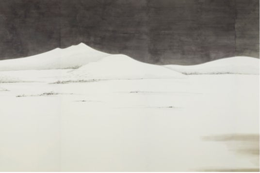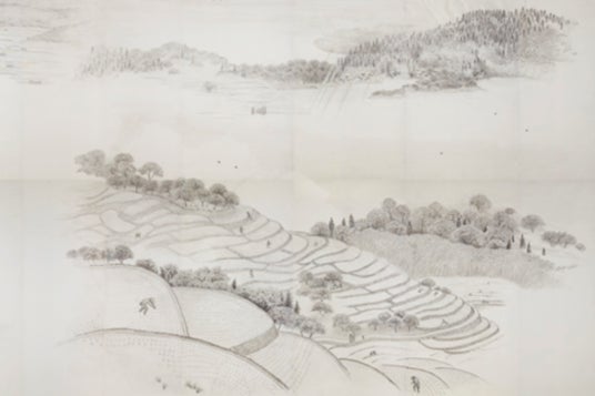 日本の美しい四季の中にある棚田を、細川護熙氏が墨絵で描いた