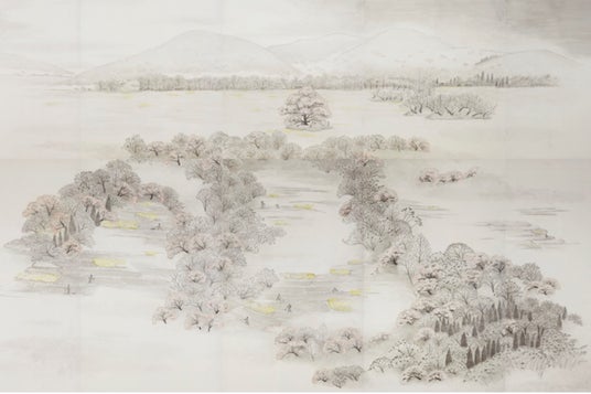 景が2m×1mの大きさの和紙60枚によって構成されており、制作開始から3年をかけて完成しまし