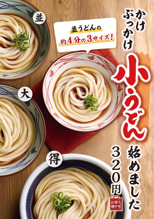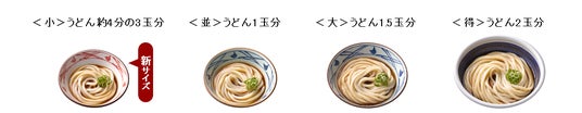「もう少し小さいサイズのうどんがあれば嬉しい」、「食べ残してしまうのがもったいない」とのお声をお客さまからいただくこともあり、こうした背景から、より多くのお客さまにご利用いただけるよう、定番商品の『かけうどん』および『ぶっかけうどん』小サイズ(並サイズ1玉分の約4分の3の量)の販売をこのたび実施することとなりました。