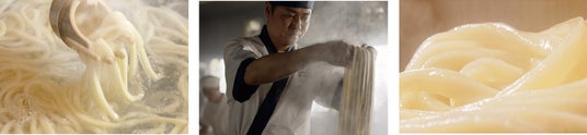 「ここのうどんは、生きている。」をブランドメッセージに掲げ、日々、食の感動体験を追求し手づくりの「おいしいうどん」をお客さまに提供しています。私たちは一軒一軒が製麺所であり、徹底的に鮮度にこだわり、国内800を超えるすべての店で、手間を惜しまず粉からうどんを日々つくり続けています。