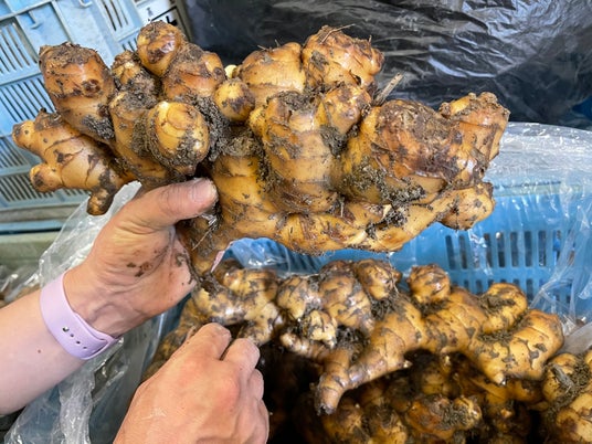 「生姜プロテイン」に使用したのは、スーパー等に売っている一般の生姜の種となる「親生姜」。サイズの大きさと辛みが強くパワフルで、生で食べるには辛みが強すぎて廃棄されることもあるそうです。このような形の悪い通常は出荷できない生姜を消費することで、フードロス削減を目指します。