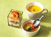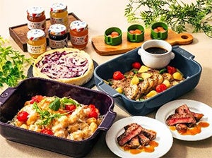 メニューは、8種類のジャムを使用したスイーツやセイボリー※、ウエルカムドリンクをご用意。甘さのバランスを考え、ブルーベリージャムと酸味のあるヨーグルトムースをあわせたグラスデザートなど、爽やかな味わいのスイーツを取り入れました。セイボリーは、砂糖やみりんの代わりにジャムを使用することで、照りと優しい甘みを出した「豚肉のママレードジャム煮込み」などをご堪能いただけます。イチゴジャムドレッシングでいただく菜園風サラダは、「アヲハタ55」の特長であるフルーツの爽やかな甘さや酸味が味わえ、サラダとジャムの意外な組み合わせをお楽しみいただけます。緑豊かな千里阪急ホテルにちなみ“ガーデンで楽しむティータイム”をテーマとし、彩り豊かなセイボリーをバスケットに入れて提供します。