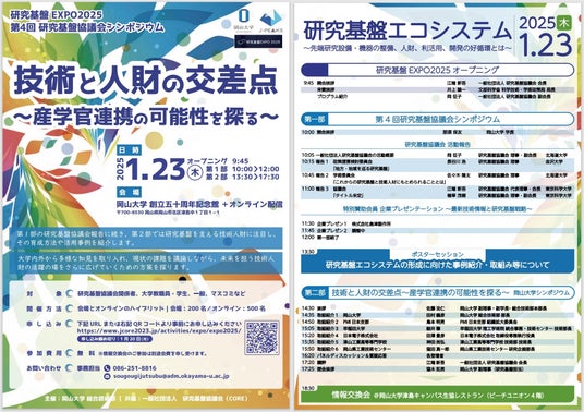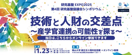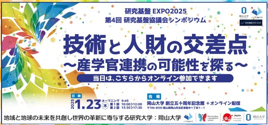 【岡山大学】研究基盤EXPO2025 第4回研究基盤協議会シンポジウム「技術と人財の交差点~産官学連携の可能性を探る~」〔1/23,木 ハイブリッド開催〕