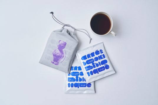 まるでトーテムポールのような姿の“くまちゃん”や、もの言いたげな表情で佇む“くまちゃん”の巾着。2種類の巾着それぞれには、ビブリオテークのオリジナルドリップコーヒー2点がセットになっています。コーヒー好きのあのひとへのプレゼントにも、自分だけのほっと一息気分転換のお供にも。お好きな楽しみ方でいろいろ味わえるプチアイテムです。