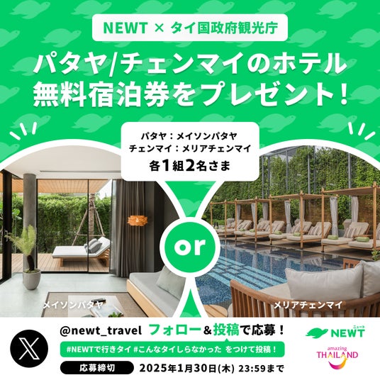 ◆「#こんなタイしらなかった」Xキャンペーンの詳細はこちら:https://x.com/newt_travel/status/1879681000235815245?utm_medium=pr