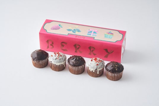 冬季限定の焼き菓子カップケーキ。濃厚なカカオの風味と甘酸っぱいベリーのハーモニーが楽しめるショコラカップケーキです。フリーズドライいちごを混ぜ込んでしっとりと焼き上げたカカオ生地に、ダークチョコレートやホワイトチョコレートのコーティングを施し、金箔やフリーズドライいちごでデコレーション。見た目も華やかで、贈り物にも最適です。