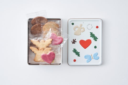 Iwaya Kahoさんによるタトゥーシールブランド『opnner〈オプナー〉』のビスケット缶がバレンタイン限定で登場いたします。甘酸っぱい「ハートのラズベリーアイシングビスケット」や「天使の発酵バタービスケット」に加え、「カカオビスケット」「アールグレイビスケット」の全4種類をセットしています。缶に綴られた「where angel is(天使のいるところ)」というメッセージが、特別な贈り物にぴったり。
