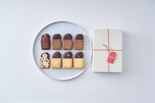 冬季限定の「パールショコラ生バターサンド」と、生クリーム入りのバタークリームに紅茶漬けのレーズンを合わせた「レーズン生バターサンド」の詰め合わせ。上品な貼り箱に収め、落ち着いた雰囲気のギフトをお探しの方にぴったりです。