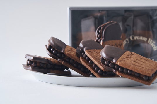 冬季限定の生バターサンド。フランス・ヴァローナ社の高級チョコレートを贅沢に使用した濃厚なガナッシュ入りの特製バタークリームを、香ばしいカカオビスケットでサンドしました。周りにトッピングしたパールクラッカンが、しっとりとした口溶けにサクサクの食感を添えます。チョコレート好きにはたまらない、リッチで贅沢な味わいのお菓子です。