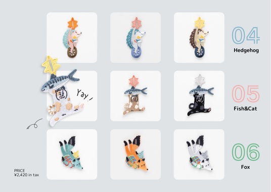 ボタンやホールに通せるものなら何にでも付けられる手軽さと、ブローチと違い服に穴をあけることなくつけられるので、弊社オンラインストアを始め、百貨店やショッピングモールなどでの販売が好調です。