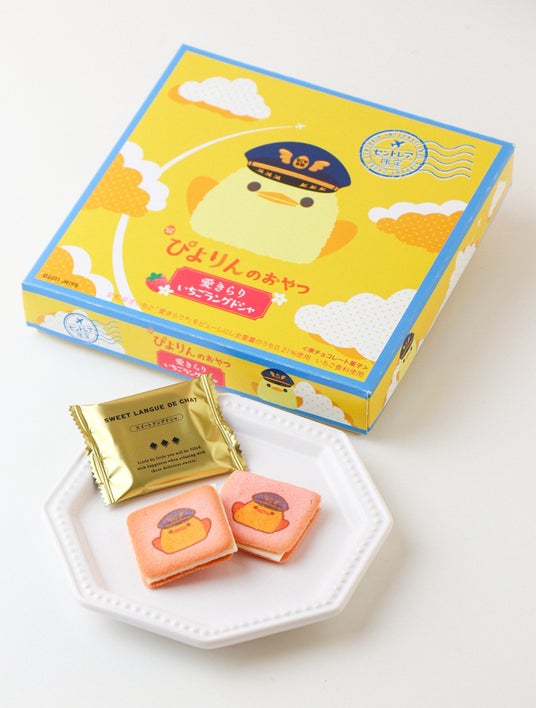 新名古屋名物スイーツ「ぴよりん」がプリントされたラングドシャ。愛知県産いちご「愛きらり」のフレーバーとパイロット制帽を被ったデザインはセントレア限定です。
