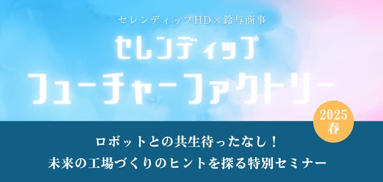 鈴与商事株式会社(本社:静岡県静岡市、代表取締役社長:伊藤 正彦、以下、鈴与商事)は、セレンディップ・ホールディングス株式会社(本社:愛知県名古屋市中区、代表取締役社長兼CEO:竹内 在、以下、セレンディップ)と共催で、「セレンディップ・フューチャーファクトリー2025春~未来の工場づくりのヒントを探る特別セミナー~」を開催することをお知らせいたします。