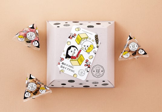 合言葉は「福はココロに、豆はイブクロに」このギフトを贈る福を分ける想い、健康を願ってつくられた豆菓子の意味が書かれた特別グリーティング福豆カード付きで8個入りと24個入りの2種類をリリース