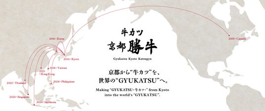 新たな日本食文化として海外でも大きな注目を集める「牛カツ-GYUKATSU-」を広めるべく、国内のみならず海外8ヵ国(韓国、台湾、香港、タイ、カナダ、インドネシア、フィリピン、シンガポール)に展開しております。