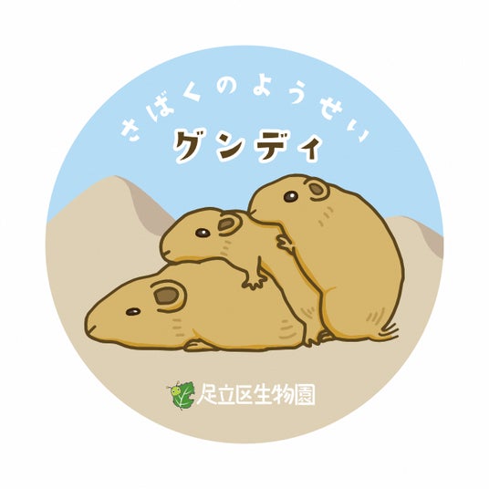 グンディの一般公開を記念して、生物園スタッフ描き下ろしの缶バッジや足立区の和菓子店とコラボしたきな粉菓子など様々なオリジナルグッズを販売予定です。