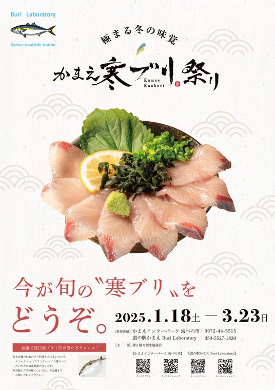 さらに、対象のブリ料理をご注文いただき、スマートフォンでアンケートにお答えいただくと、抽選で蒲江産ブリ1匹が当たるプレゼントキャンペーンも実施いたします。
