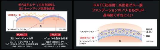 高補整&持続効果で白光トーンアップ仕上がりくずれない、KATE独自「 スノースキンフィット技術」