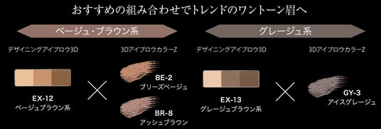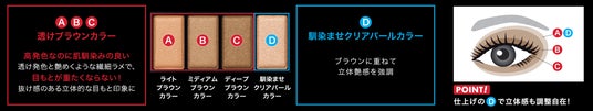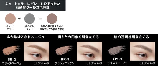 透け発色のブラウンカラーは、目もとを自然に大きく強調!その上から馴染ませクリアパールカラーを重ねれば、くすまずにクリアな立体艶感を演出できます。この他、ブラシでぼかしてパウダリー仕上がりに変化する「アイブロウペンシル(パウダリーフィニッシュ)」や「スーパーシャープライナーEX4.0」の限定色‟新次元なじみブラック“、「スノースキンベース」からはピンクカラーの限定色、そして「3DアイブロウカラーZ」と「デザイニングアイブロウ3D」の限定色‟低彩度グレーニュアンスカラー“も同日発売いたします。