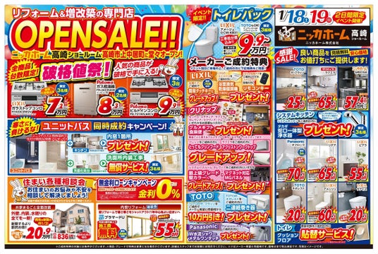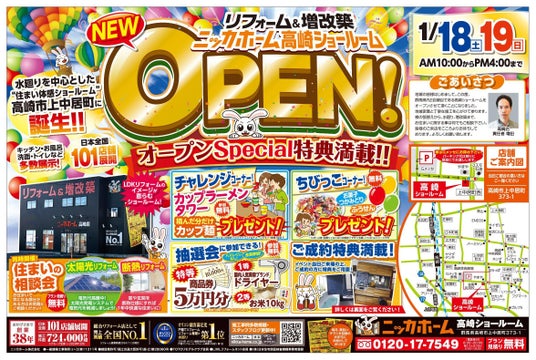 “リフォーム&増改築”のニッカホーム株式会社(本社:愛知県名古屋市緑区篭山、代表取締役社長:西田裕久、以下 ニッカホーム)の関東エリア・新店舗『ニッカホーム高崎ショールーム』が、2025年1月18日(土)よりオープン!
