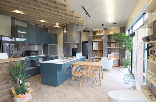 当ショールームには、キッチン5台・トイレ3台・洗面台4台・ユニットバス2台の水まわり商品の展示はもちろん、内装材や照明、外装材に至るまで、様々な商品を展示しております。