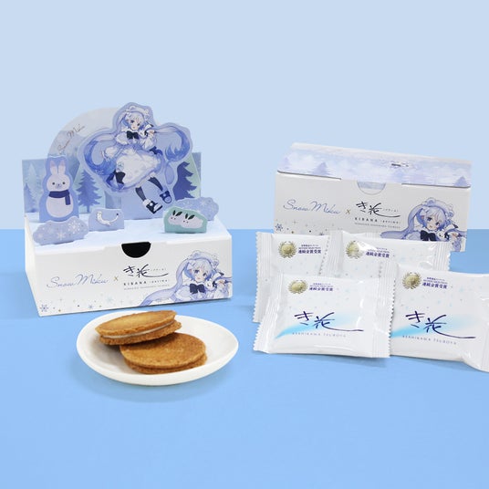 株式会社壷屋総本店(本社:北海道旭川市 代表取締役社長:村本 暁宣)は、クリプトン・フューチャー・メディア株式会社(本社:北海道札幌市、代表取締役:伊藤博之)の人気キャラクター、「初音ミク(雪ミク)」と当社看板商品の「き花」とのコラボ商品を冬季限定で販売いたします。是非、ジオラマパーツを組み上げて「き花」「初音ミク(雪ミク)」の世界観である北海道の冬景色をご自宅でお楽しみください。