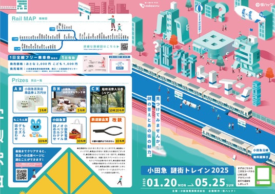 小田急電鉄株式会社(本社:東京都新宿区 社長:鈴木 滋)は、2025年1月20日(月)から5月25日(日)まで、小田急線各駅で無料配布する冊子を片手に小田急線を乗り継ぎながら、沿線各街で謎解きをお楽しみいただける体験型イベント「小田急謎街トレイン2025」を開催します。