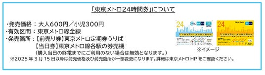 ※東京メトロ24時間券は付属していません。「メトロタイムゲート」へのご参加には、便利な「東京メトロ24時間券」がオススメです。