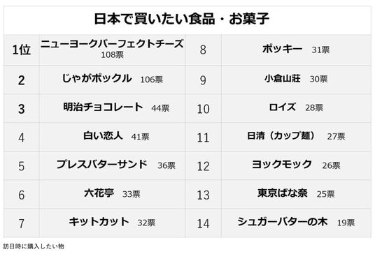 台湾・香港観光客が日本で買いたいお菓子No.1