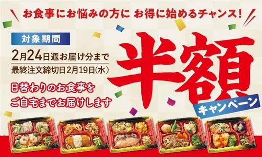 「ワタミの宅食」では、1月16日より、2025年初春キャンペーンを開始!2月24日週お届け分まで初回注文週に限り、半額!でお届けします