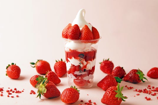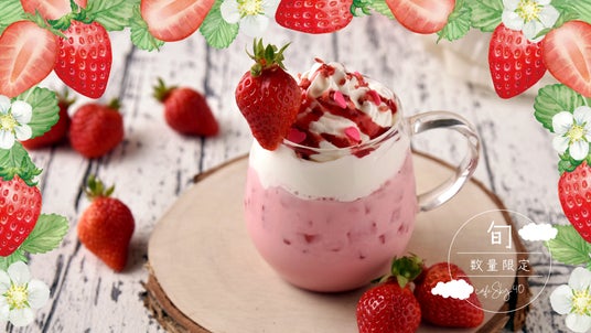 あまい苺みるくにホイップ、ベリーソース、トッピングと真っ赤な苺を飾った季節限定のカップが登場します。