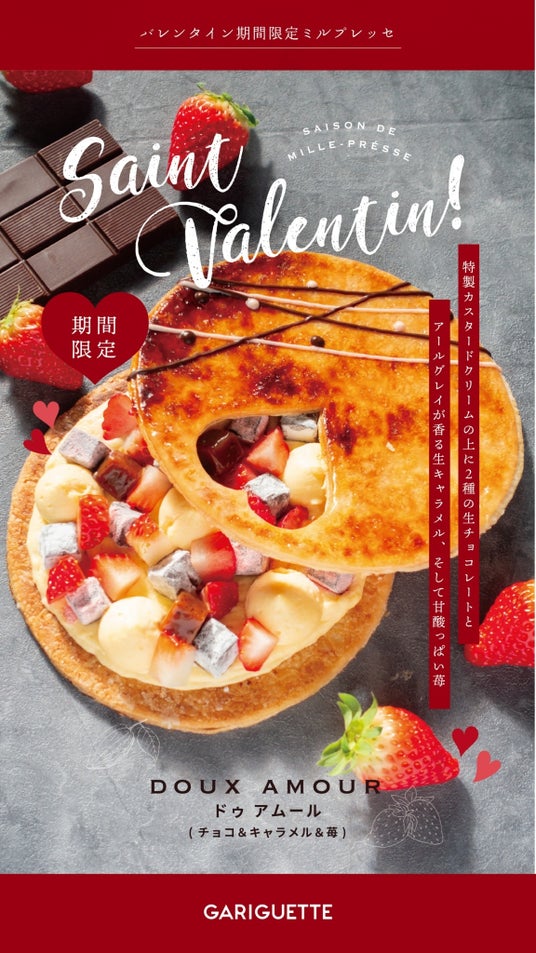 東京・表参道、大阪・梅田にあるミルフィーユ専門店「GARIGUETTE―ガリゲット―」は2025年1月14日(火)から期間限定商品「doux amour ドゥ アムール」の冬季販売を開始いたします。