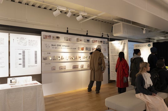 市ヶ谷キャンパス1階にある「MUJIcom 武蔵野美術大学 市ヶ谷キャンパス」内の共創スペースでは、CI学科生の成長過程をたどる特別展示を開催します。