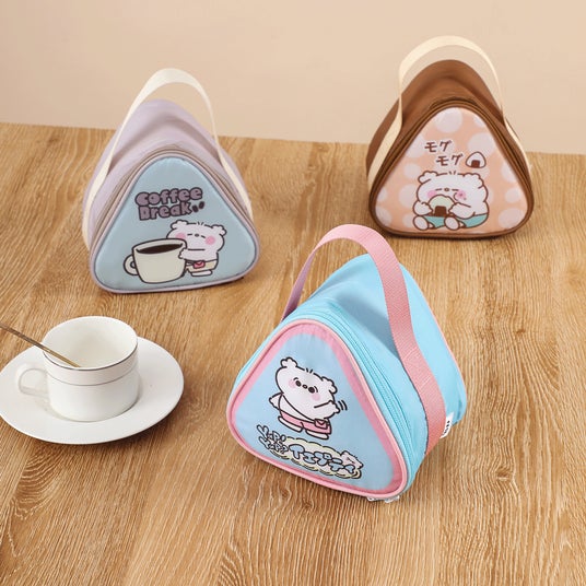 イエプティがプリントされたおにぎり型保冷バッグです。おにぎりやちょっとした軽食、デザートなどの持ち運びに便利なアイテムです。