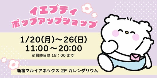 新宿マルイ アネックス(株式会社丸井、本社:東京都中野区、取締役社長:青野 真博)2Fにて、「イエプティポップアップショップ」をオープンいたします。その愛くるしさからSNSで注目されているキャラクターの「イエプティ」のグッズを取り揃えました。今回が新宿エリア初出店です。