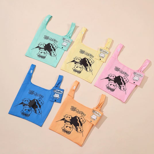 収納袋がセットになったたくさんのイエプティがプリントされたエコバッグです。軽量で持ち運びがしやすいエコバッグは、スーパーやコンビニなどちょっとしたお買物にぴったりです。使わないときはセットのポーチにしまってコンパクトに収納でき場所も取りません。