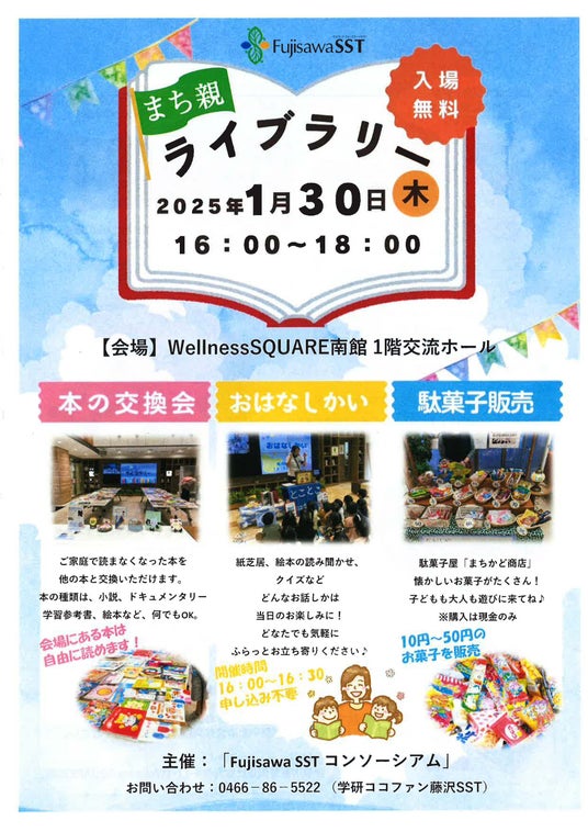 株式会社 学研ホールディングス(東京・品川/代表取締役社長:宮原博昭)が参画している「Fujisawa SSTコンソーシアム」は、1月30日(木)に本の交換会「まち親ライブラリー」を開催いたします。