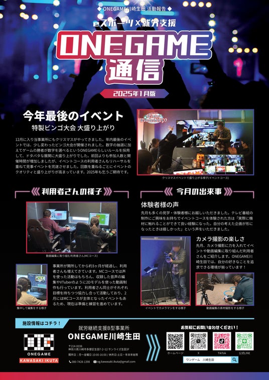 毎月発行しているONEGAME通信。利用者の方の近況やイベントの様子を配信しています。