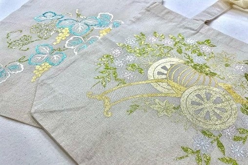 友禅の帯に使われる柄が選べるほか、3色のトートバッグから好きな色を選べます。