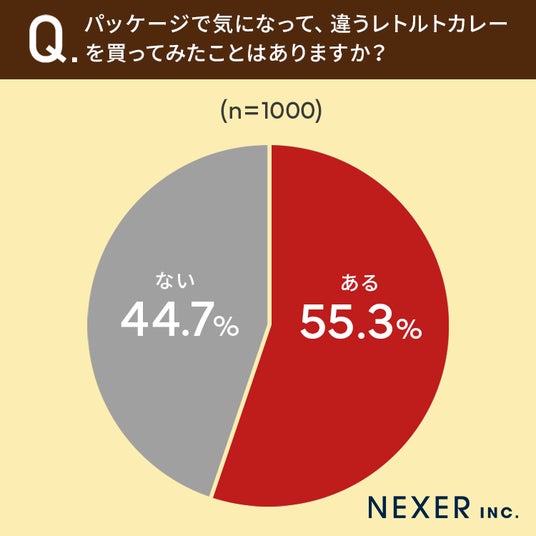 55.3%の方が、パッケージで気になって「普段とは違うレトルトカレーを買ったことがある」と回答しています。