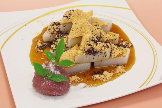 船橋屋の看板商品であるくず餅に、甘塩っぱさがクセになる梅紫蘇の風味が加わった「梅紫蘇くず餅」が登場。この商品は、船橋屋亀戸天神前本店のイートイン限定メニューとして提供されます。香ばしい梅紫蘇入りの特製きな粉をたっぷりまぶしたくず餅は、梅の豊かな香りと紫蘇の爽やかさが絶妙に調和した一品です。そして、濃厚な梅餡を添えることで、春の訪れを存分に感じられる味わいに仕上げています。