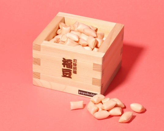 コロンと小さいキャンディを節分の福豆に見立てた、升に入ったキャンディです。フレーバーには大豆から連想したポップコーンを選び、本物の豆を食べられない方でも節分気分を味わえる商品に仕上げました。年の数のキャンディを食べれば、魔を滅しハッピーな春を迎えられること間違いなしです。