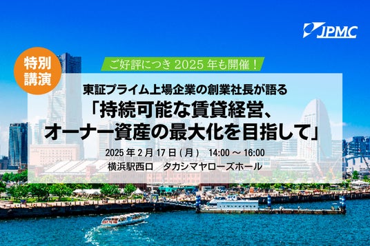 “持続可能な賃貸経営”を追求する株式会社JPMC(本社:東京都千代田区、代表取締役 社長執行役員:武藤 英明、以下「JPMC」)の代表 武藤 英明が、2025年2月17日(月)に高島屋ファイナンシャル・パートナーズ様主催の賃貸住宅オーナー向けの経営セミナーに登壇いたします。