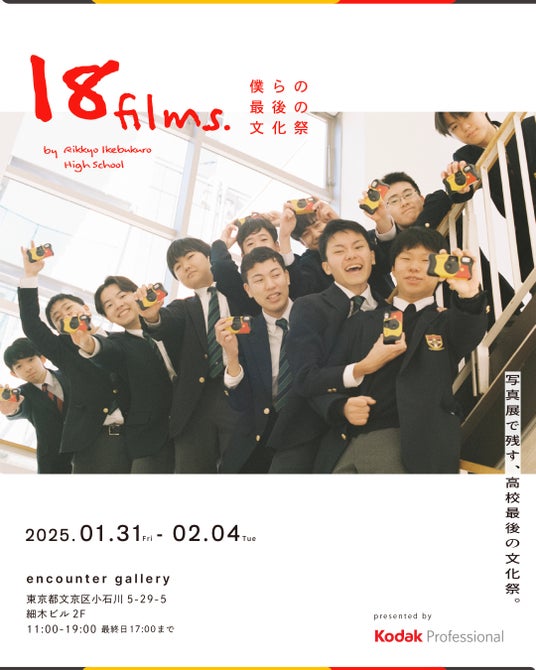 株式会社CURBONは、Kodakと立教池袋中学校・高等学校と共催し、写真展「18 films. ~僕らの最後の文化祭~」を、2025年1月31日(金)~2月4日(火)の期間中、東京都茗荷谷「encounter gallery」にて開催いたします。