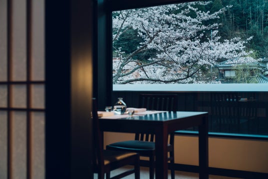 長門湯本温泉街には、音信川を挟むように宿が軒を連ね、川沿いには桜が立ち並びます。3月末から4月上旬にかけての桜の開花時期には、多くの観光客が足を運び、その桜並木に魅了されています。界 長門ではこれまで、川床テラスでスイーツを食べながら夜桜鑑賞を楽しめる「夜桜川床花見」を開催してきましたが、今年は滞在中いつでも桜を愛でながら過ごせる滞在プランを用意しました。