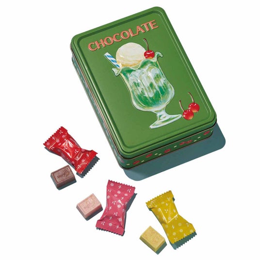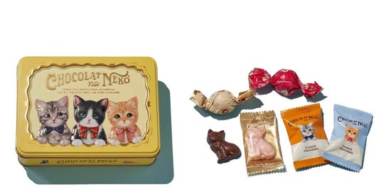 愛らしい3匹の子猫を描いたアソート缶。クランチチョコレートや