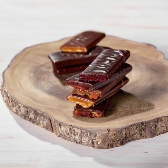 キャラメルをうすくのばし、チョコレートでコーティング。 ルルー自慢のキャラメルとチョコレート