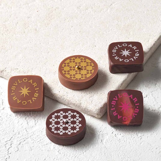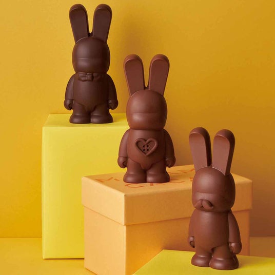 ウサギ型チョコレートの中に、小さなモチーフとロゴが施された繊細な