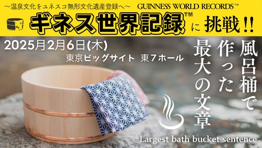 全国旅館ホテル生活衛生同業組合連合会青年部(全旅連青年部)と日本能率協会が主催する「宿フェス2025」会場にて、全国の観光宿泊産業関係者が「風呂桶で作った最大の文章」Largest bath bucket sentenceのギネス世界記録(TM)に挑戦することが決定した。