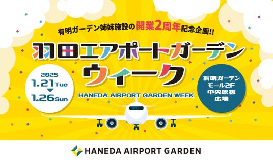 住友不動産商業マネジメント株式会社(本社:東京都新宿区 代表取締役社長:山本 直人)は、羽田空港第3ターミナル直結の複合施設「羽田エアポートガーデン」(所在:東京都大田区)が開業2周年を迎えることを記念し、姉妹施設の「有明ガーデン」(所在:東京都江東区)にて『羽田エアポートガーデンウィーク』を開催いたします。
