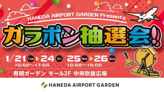 300名様に豪華景品が当たるガラポン抽選会を開催します。景品には羽田エアポートガーデンのショップイチオシの商品や限定非売品などをご用意しております。